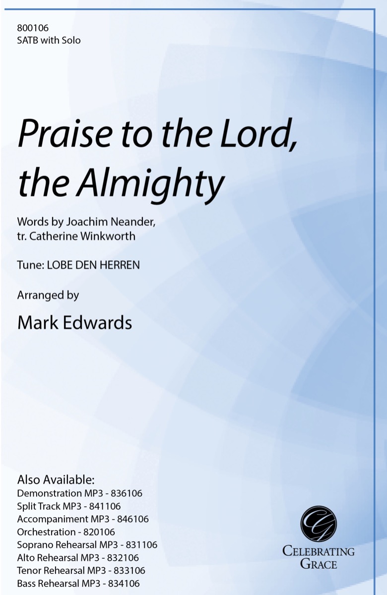 Mark Edwards' arrangement of the classic hymn for SATB choir and soloist creates a festive atmosphere in which the soloist and choir can shine. While the choir occasionally serves as a backup to the soloist, the choir also has its own moments to inspire. The first stanza begins with the soloist, while the choir intersperses with choral supplements. The second stanza is for choir only, beginning with TB voices and progressing to lush four-part writing. Following an exciting key change, the soloist and choir reunite for a majestic third stanza that features a soaring solo line and elevated choral writing. The piece comes to a strong conclusion full of energy and excitement. A full orchestration (Score and parts for Flute 1 & 2, Oboe, Bb Clarinets 1 & 2, Bassoon, Bb Trumpets 1 & 2, Horn in F, Trombones 1 &2, Tuba, Percussion, Timpani, Violin 1 & 2, Viola, Cello, and String Bass) is available separately. Minimum purchase of ten (10) copies on digital download anthems.